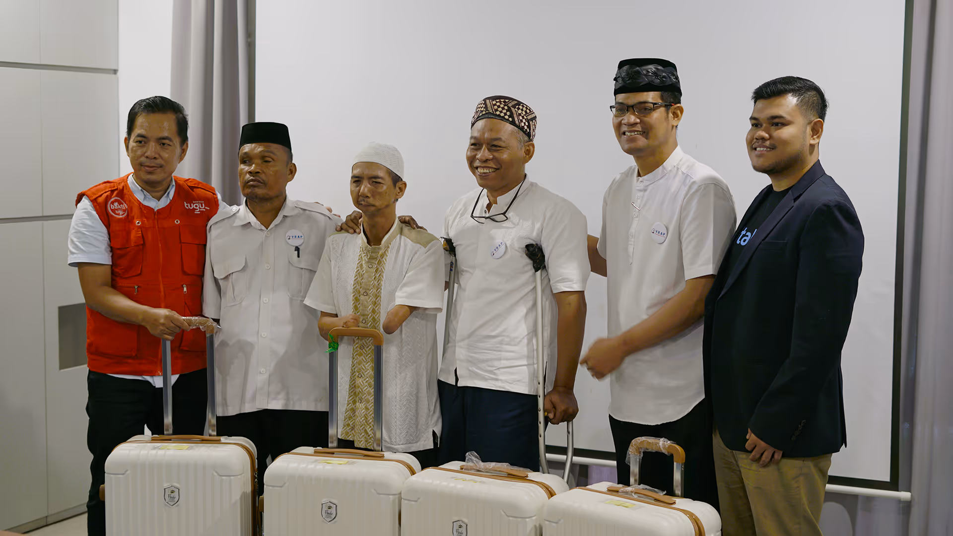 Dalam program ibadah ke tanah suci perdana bersama Bakti Tugu dan Tugu Insurance, ada tiga sosok penyandang disabilitas yang berangkat bersama seorang pendamping. Mereka adalah orang-orang sederhana yang tetap berkontribusi untuk lingkungannya meski hidup dengan keterbatasan.